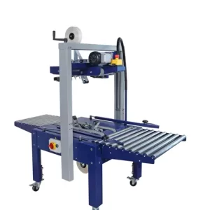 Wrapping machines with lateral drag for closing fixed format boxes, available in three versions: 50M, 65M and 80M